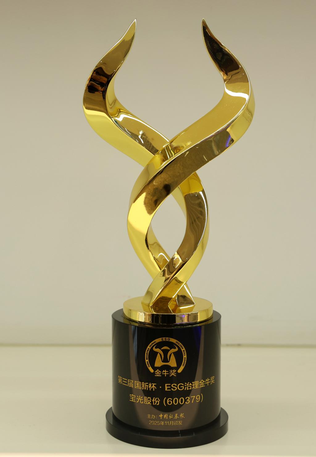 宝光股份先后荣获“第三届国新杯·ESG治理金牛奖”、“2025年度上市公司最佳ESG实践奖”。这是企业继获评“ESG金牛奖科技引领二十强”后,再次荣获金牛系列奖项,充分体现了公司在环境、社会与治理(ESG)领域,特别是在公司治理方面的优秀表现。