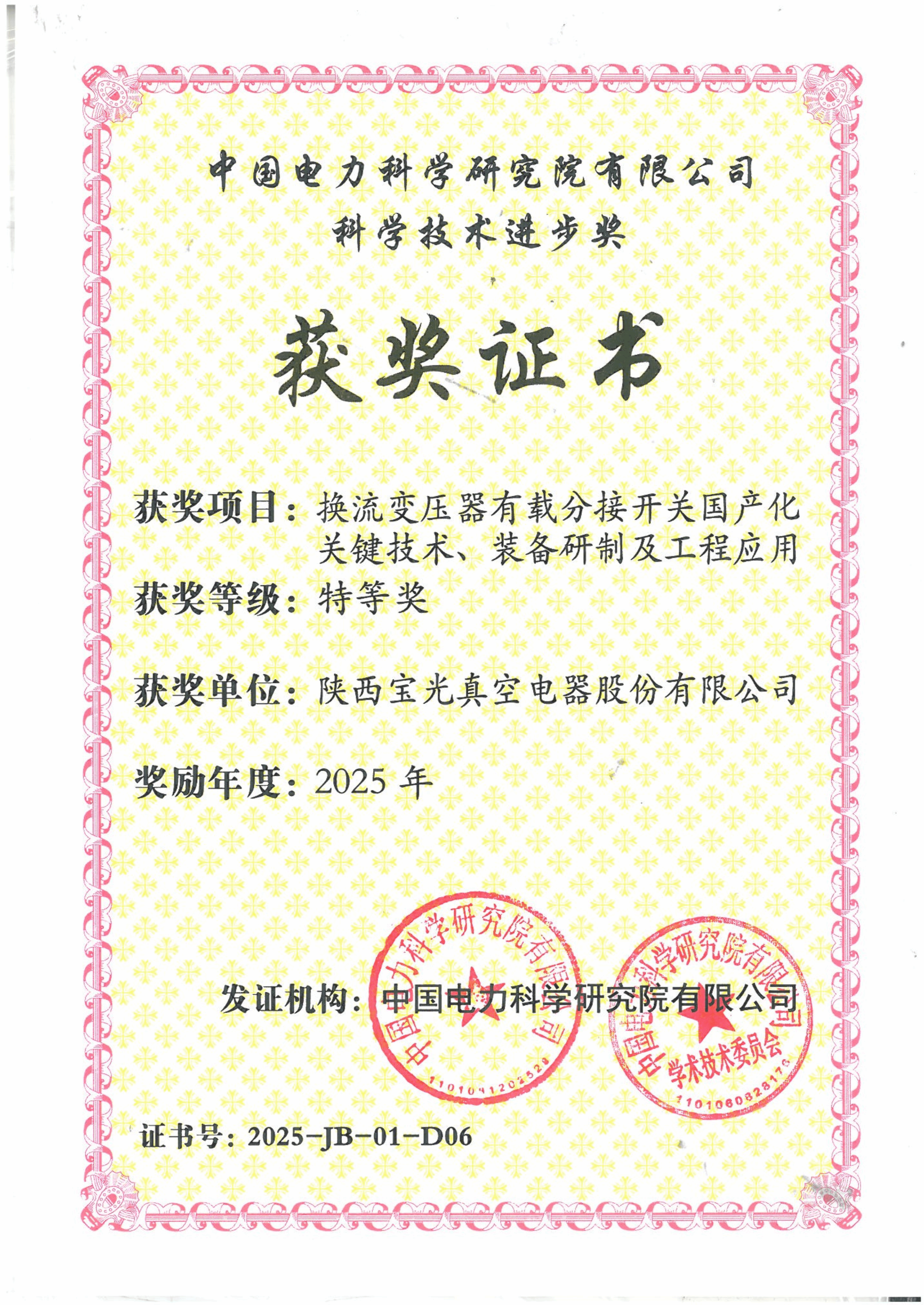 近日,宝光股份新品研发工作再传喜讯,由宝光股份等多家单位联合研制的我国首台拥有完全自主知识产权的,±800千伏特高压换流变真空有载分接开关完成全部型式试验,关键技术指标达到国际领先水平,顺利实现特高压换流变全产业链自主可控。 作为特高压直流输电工程的关键核心设备之一,有载分接开关动作的顺畅可靠决定着工程的有效运转,而这一动作又依赖着有载分接开关用真空灭弧室的稳定可靠。作为有载分接开关的心脏,有...